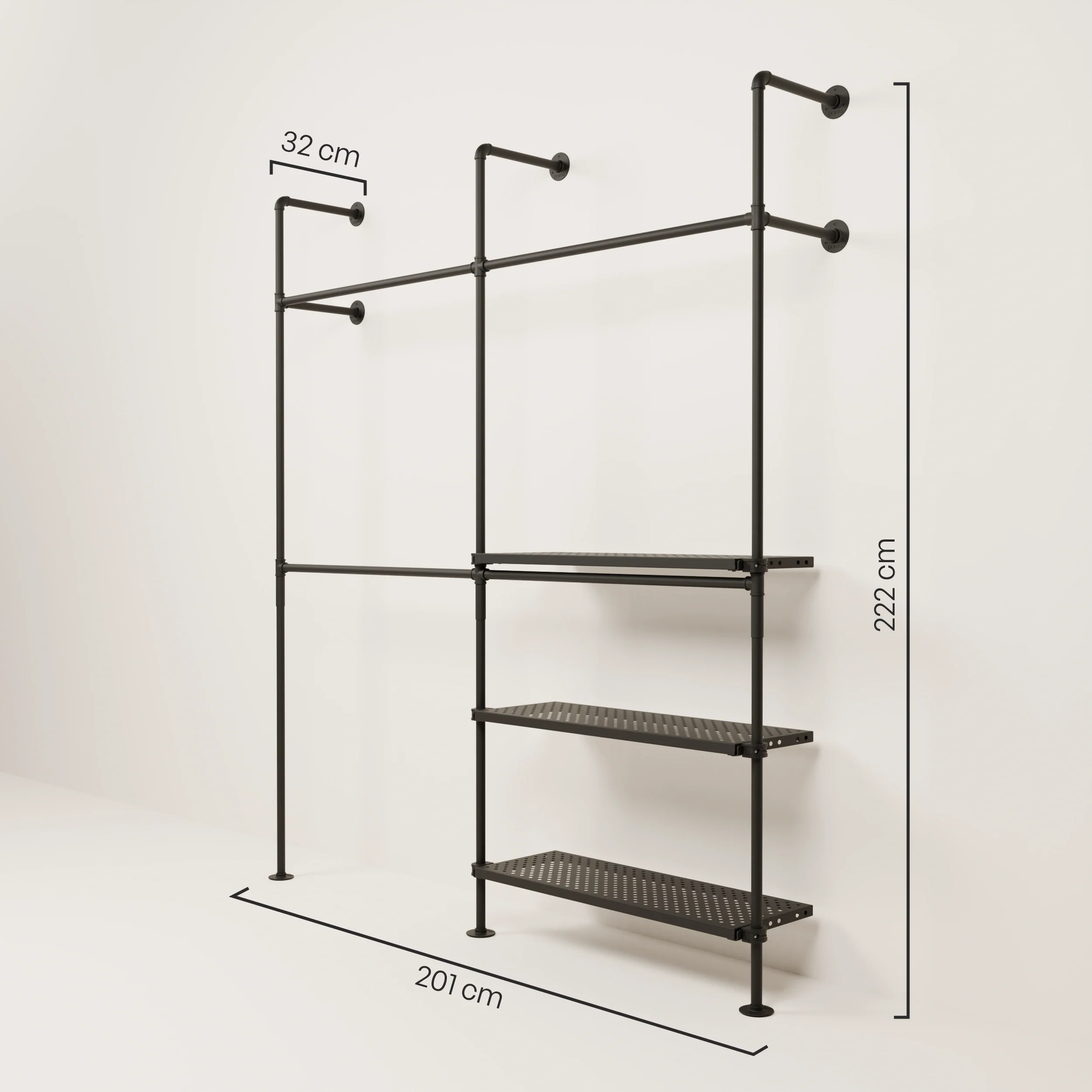 KIM DOUBLE 2 METAL – 3 Regalböden | Kleiderständer mit Ablage