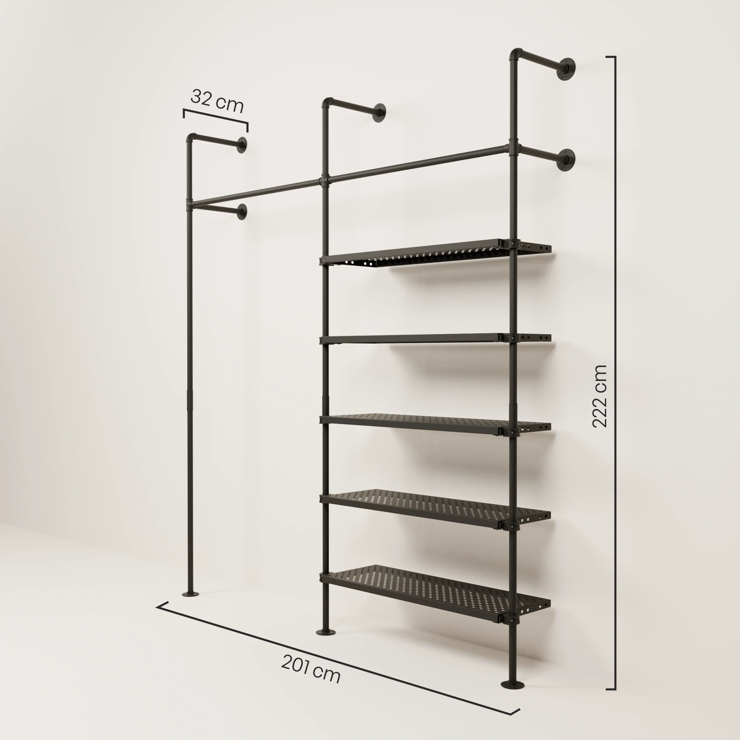 KIM 2 METAL – 5 Regalböden | Wandregal mit Kleiderstange