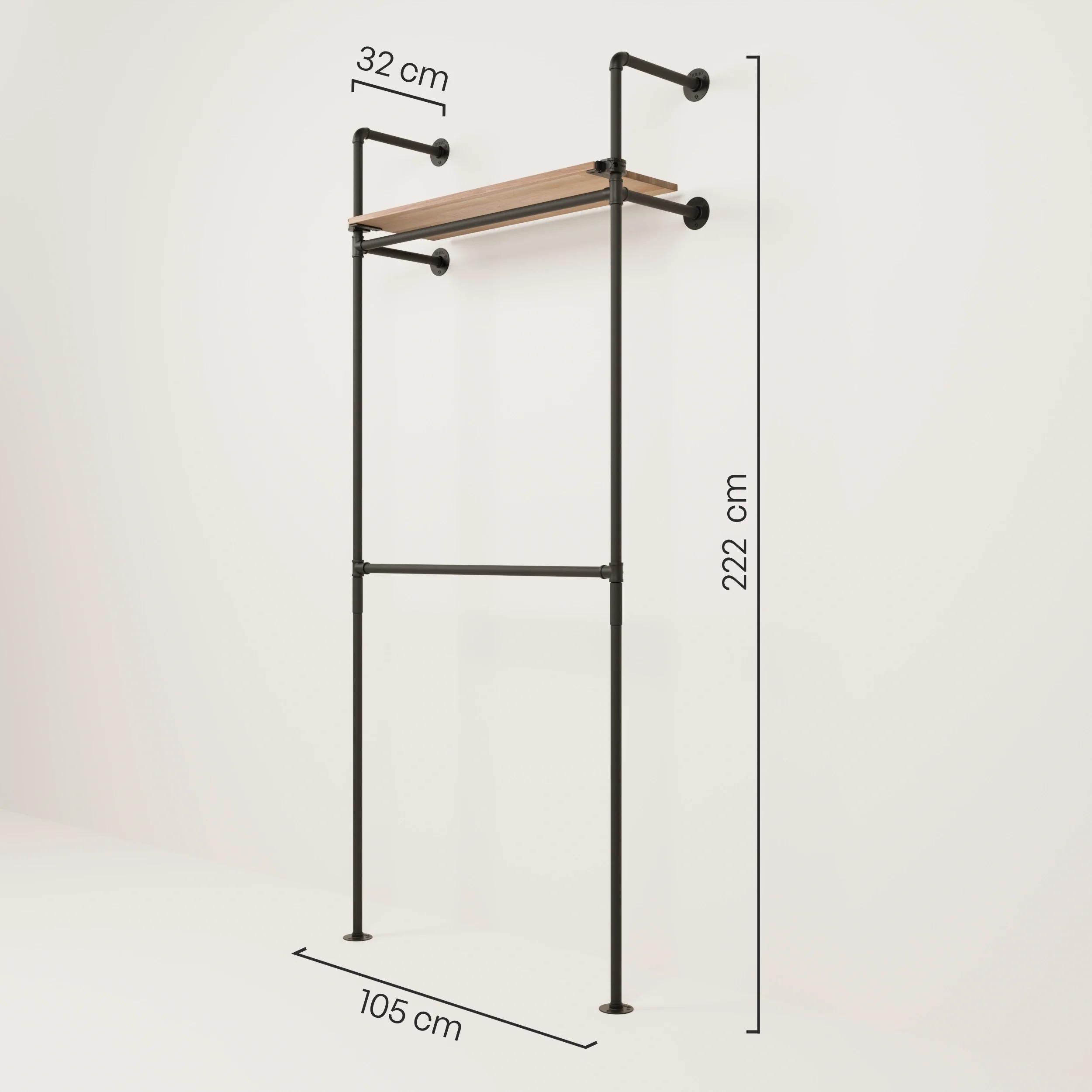 Durch das Schraubsystem baust du die Garderobe Holz Metall schnell und einfach zusammen. Der Auf- und Abbau der Garderobe Holz Metall ist durch das Gewindesystem problemlos möglich, daher büßt die KIM DOUBLE 1 OAK 1 auch bei mehrfachen Umzügen nicht an seiner Stabilität ein. Durchdachtes Industrial Design von pamo!