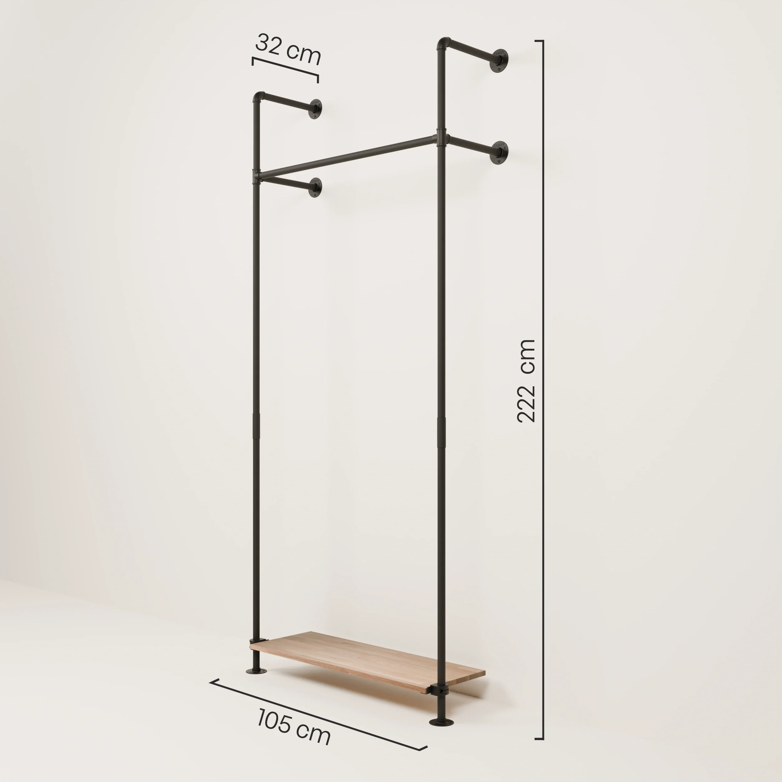Durch das Schraubsystem baust du den Garderobenständer schnell und einfach zusammen. Der Auf- und Abbau des Industrial Garderobenständers ist durch das Gewindesystem problemlos möglich, daher büßt das Garderobensystem auch bei mehrfachen Umzügen nicht an seiner Stabilität ein. Durchdachtes Industrial Design von pamo!