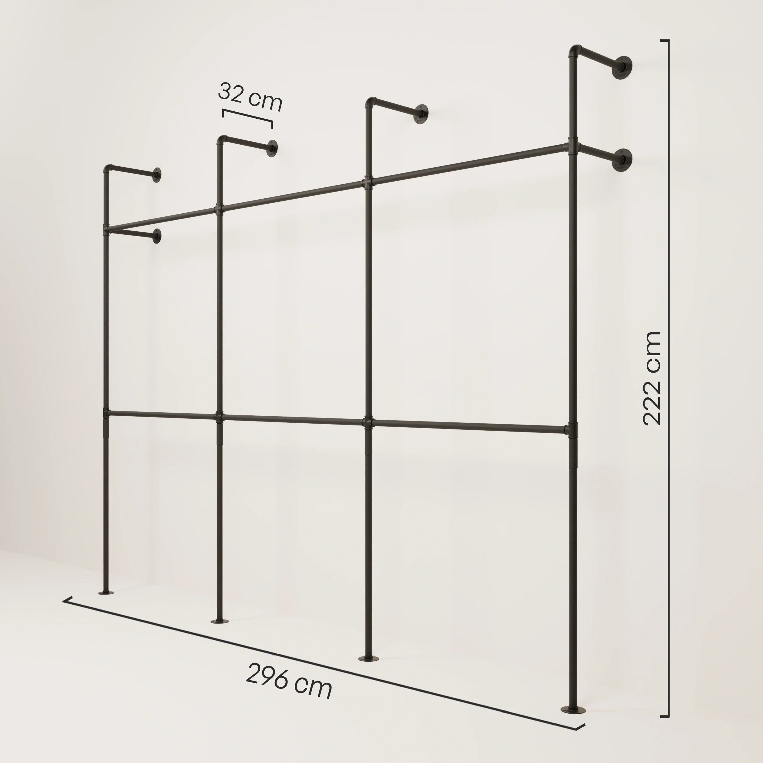 KIM DOUBLE 3 – Garderobenstange Wand