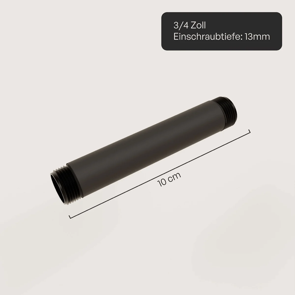 3/4" Wasserrohr mit Gewinde – Verschiedene Längen | Pulverbeschichtet | Temperguss | Schwarz
